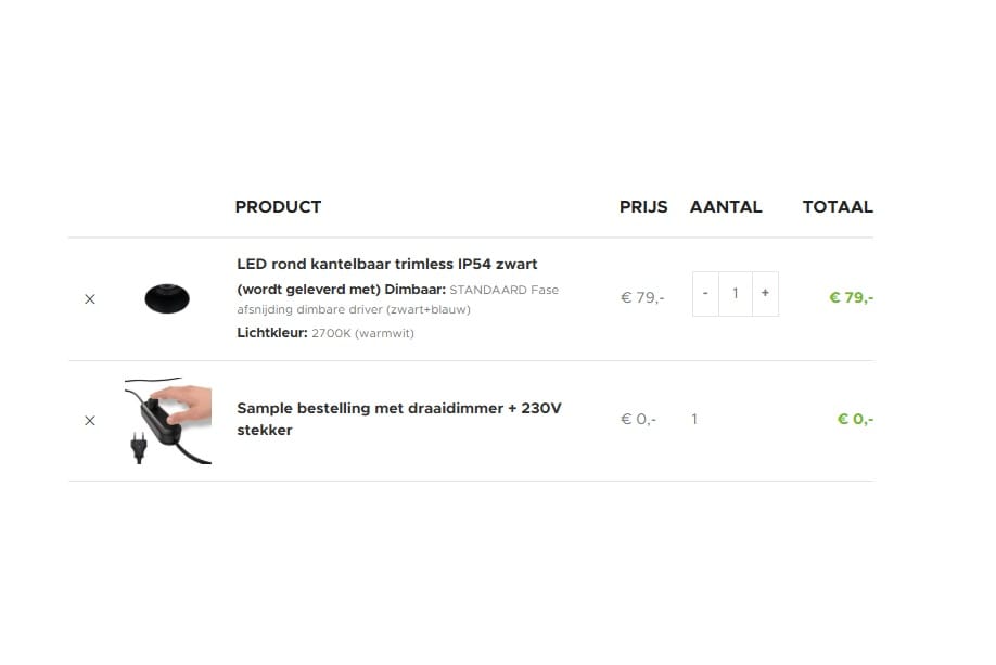 - Voeg dit product gratis toe en ontvang een complete SAMPLE set met dimmer zodat u de spot kunt testen.
