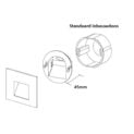 Past in standaard inbouwdoos. Verkrijgbaar in zwart, wit of Brons