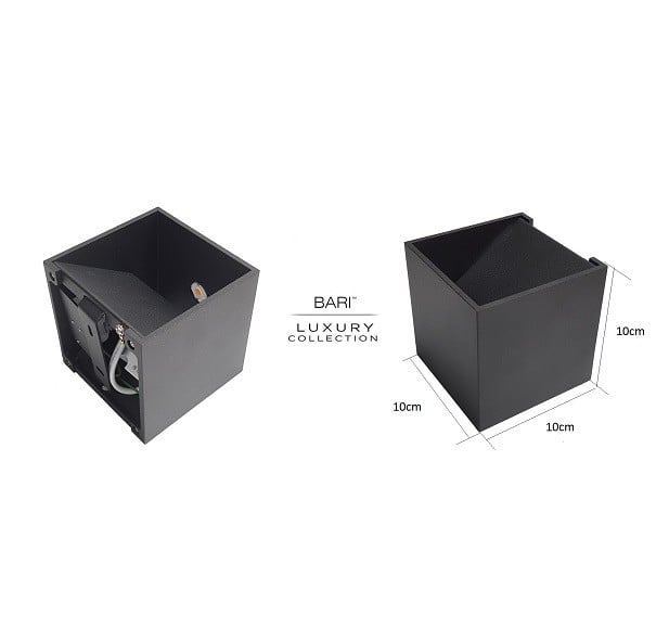 Wandlamp STRAK zwart/wit Cube dimbaar 10cm – www.trimlessspots.de